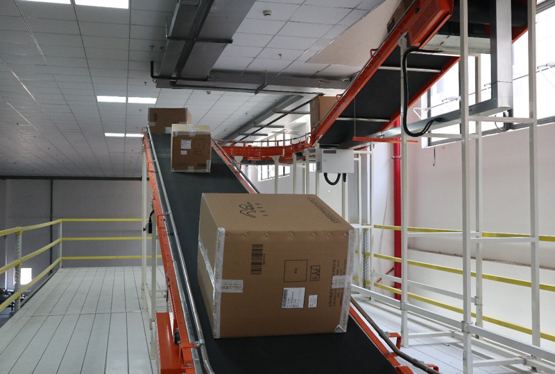 坐落于上海市奉賢區(qū)奉金路的水星家紡倉儲(chǔ)物流中心,共有4個(gè)庫房,目前已完工的一期項(xiàng)目中,貫穿四個(gè)庫區(qū)的自動(dòng)化輸送分揀系統(tǒng),輸送線長(zhǎng)達(dá)400多米,集成了轉(zhuǎn)彎輥筒輸送機(jī)、直行輥筒輸送機(jī)、上下坡皮帶輸送機(jī)、水平皮帶輸送機(jī)、移栽機(jī)、分流、合流機(jī)構(gòu)、電氣控制及相應(yīng)軟件系統(tǒng)、不銹鋼工作臺(tái)等,并針對(duì)安全、消防要求、維護(hù)需要和現(xiàn)場(chǎng)工作環(huán)境的特殊需要,安裝了消防輥道機(jī)、設(shè)備自身安裝與維護(hù)所需要的鋼結(jié)構(gòu)檢修通道及護(hù)欄、防撞設(shè)備、人員通行設(shè)備、急停按鈕及報(bào)警裝置等。